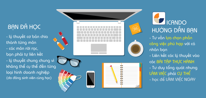 ngoài ra còn có hệ thống eLearning hỗ trợ kiến thức và bài tập thực hành (lms.icando.edu.vn) ...
